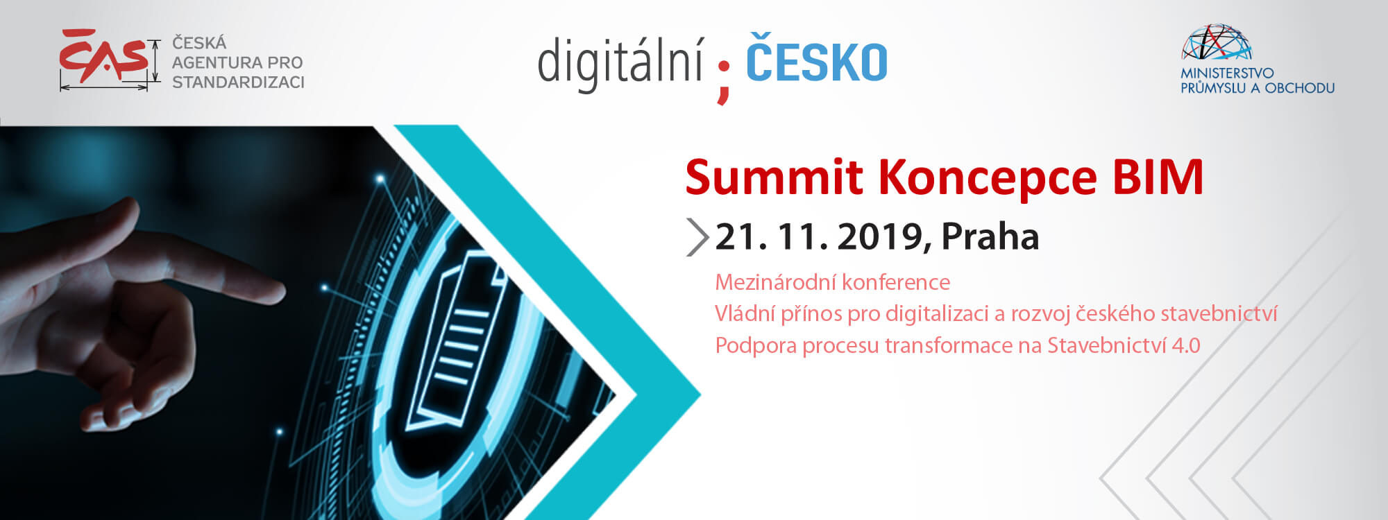 Reprezentativní mezinárodní konference věnovaná implementaci Koncepce BIM do českého stavebnictví se koná 21. listopadu 2019 v Praze a bude se věnovat důležitým tématům, která jsou definována ve vládní strategii Digitální Česko a ve vládním usnesení o zavádění Koncepce BIM do českého stavebnictví. Program bude soustředěn zejména na vládní přínos pro rozvoj českého stavebnictví pomocí digitalizace a na podporu transformace na Stavebnictví 4.0. Konference je svým zaměřením, tématy i výběrem řečníků určena odborné veřejnosti z podnikatelské sféry a odborníkům z veřejného sektoru a státní správy.